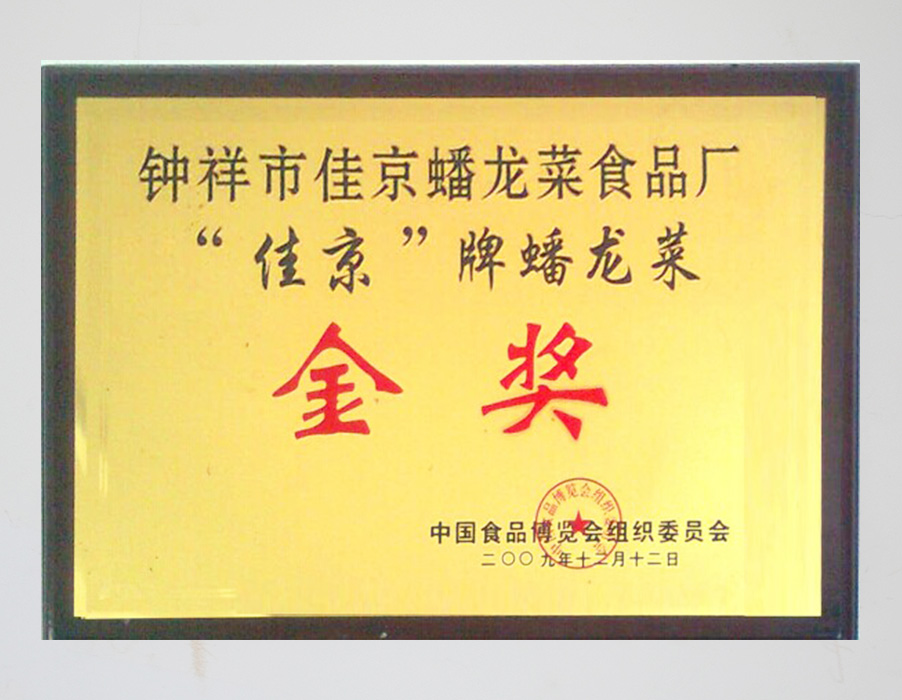 《佳京》牌蟠龍菜榮獲金獎